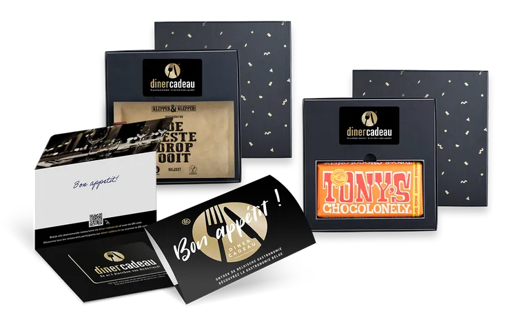 De Diner Cadeaubon wordt standaard gratis geleverd in een stijlvolle Diner Cadeau-envelop. Wil je het geschenk een luxere uitstraling geven? Kies dan voor onze Luxe Cadeaubox. Via de bestelmodule kun je bovendien eenvoudig een zakje drop of een chocolade reep toevoegen om de verrassing compleet te maken!